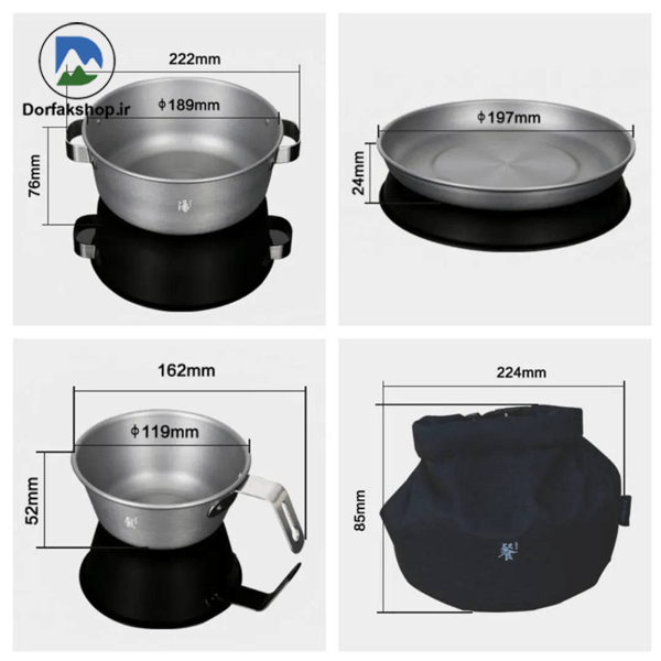 ست ظروف فایرمپل GURMET یک مجموعه غذاخوری دو نفره برای فضای باز است که شامل یک قابلمه، دو عدد کاسه و دو عدد بشقاب می شود. این ظروف از آلیاژ آلومینیوم و استیل ضد زنگ ساخته شده اند و لایه بیرونی آنها آنادایز شده است.